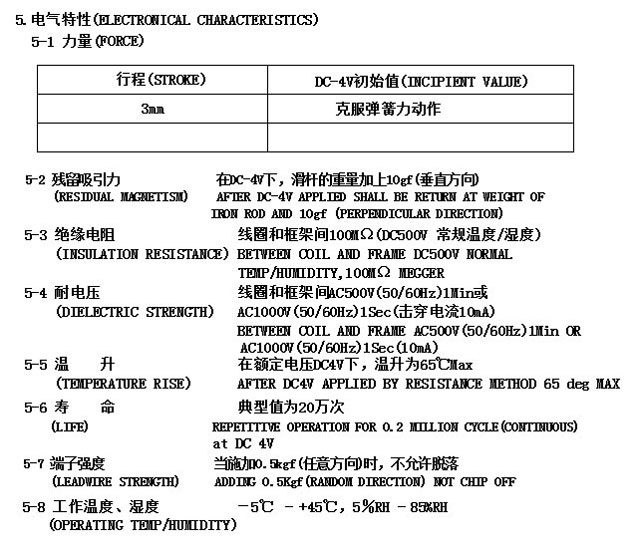 | 电流: | 0.4A | 通电率: | 50% | 弹簧回力: | 吸力: |