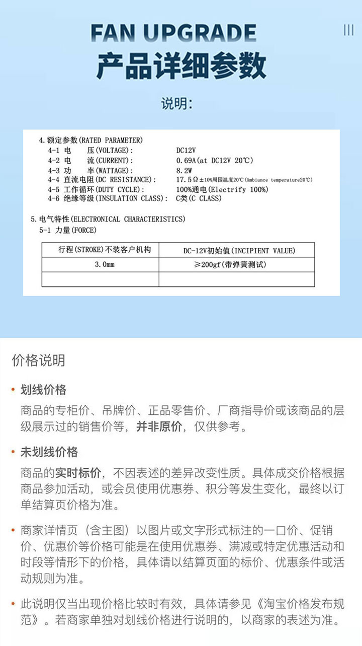 | 电压: | DC12V | 行程: | 3mm | 电阻: | 17.5欧 | 功率: | 8.2W |